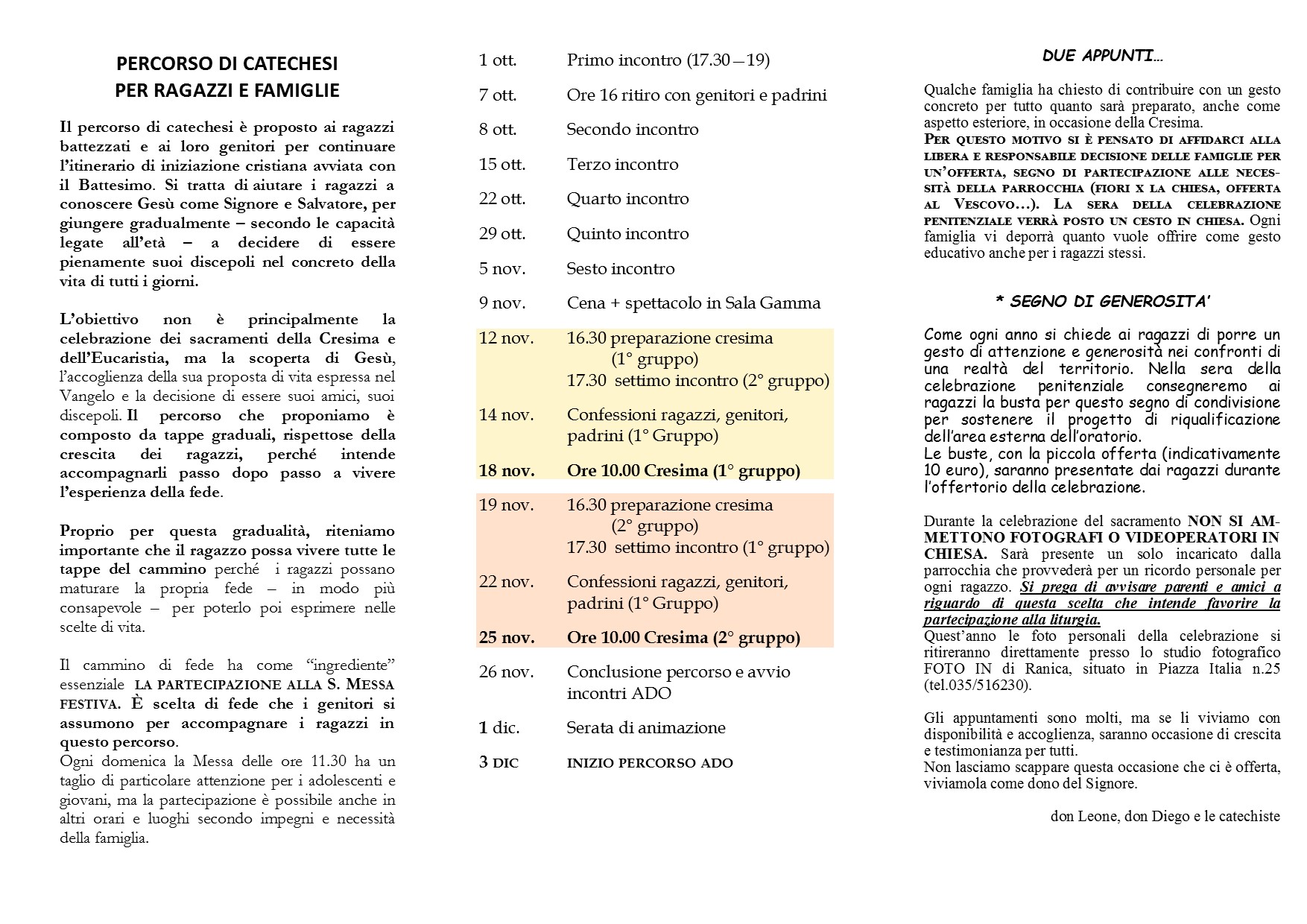 Calendario appuntamenti Adolescenti 3 media di oratorio · 7 Ottobre 2018 Ecco il calendario con tutti gli appuntamenti fino alla Cresima per i ragazzi di 3 media