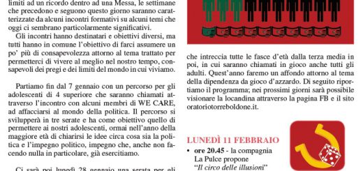 * agire politicamente: non basta aggredire i problemi con dichiarazioni di principio se non si individuano strumenti di traduzione pratica. La politica è l’arte del ‘fare’ il bene concretamente possibile, nell’ottica del bene di tutti.