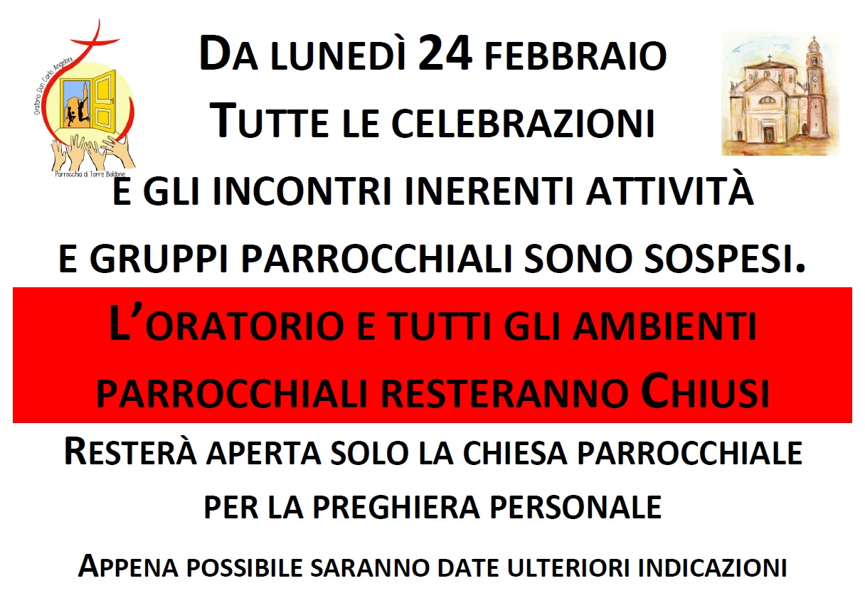 ❌TUTTE LE ATTIVITÀ IN PARROCCHIA E IN ORATORIO SONO SOSPESE❌