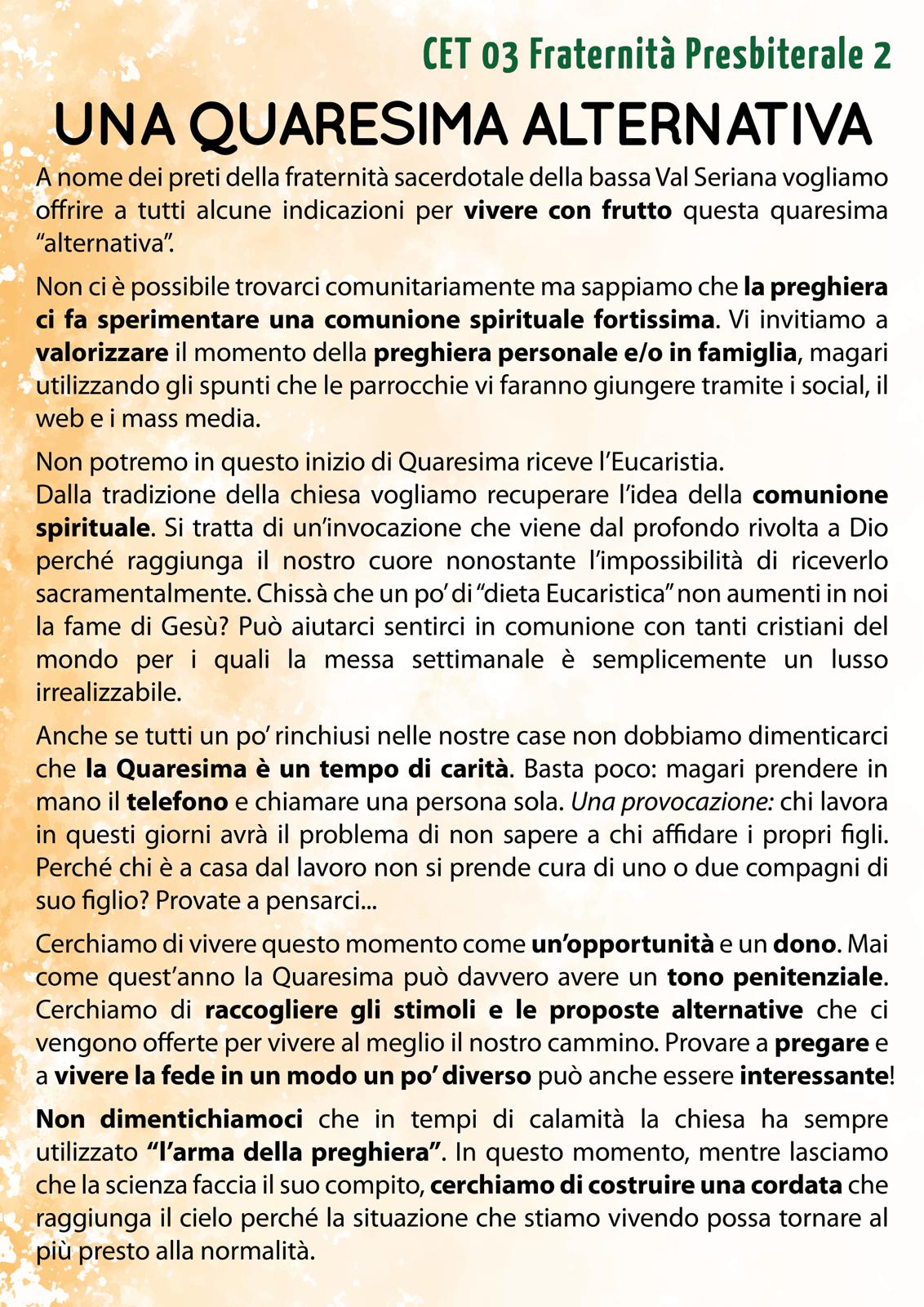 UNA QUARESIMA ALTERNATIVA – CET 03 Fraternità Presbiterale 2