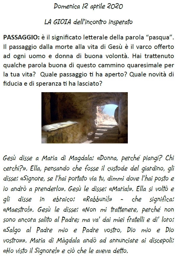 Domenica 12 aprile – Pasqua di risurrezione di oratorio · 12 Aprile 2020 A voi tutti l’augurio di una Santa Pasqua. i preti della comunità di Torre Boldone