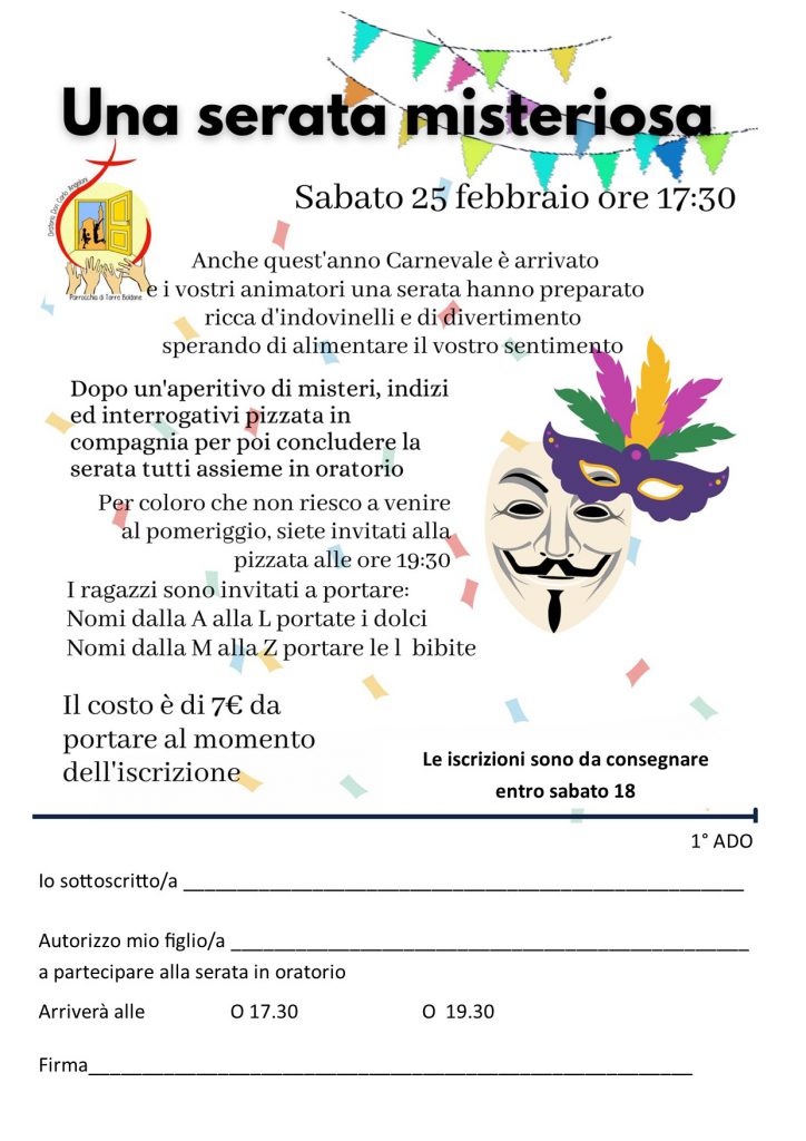 Carnevale e serate soft per 3 media e adolescenti di oratorio · 14 Febbraio 2023 In occasione del carnevale sono molte le proposte messe in atto per piccoli e grandi…