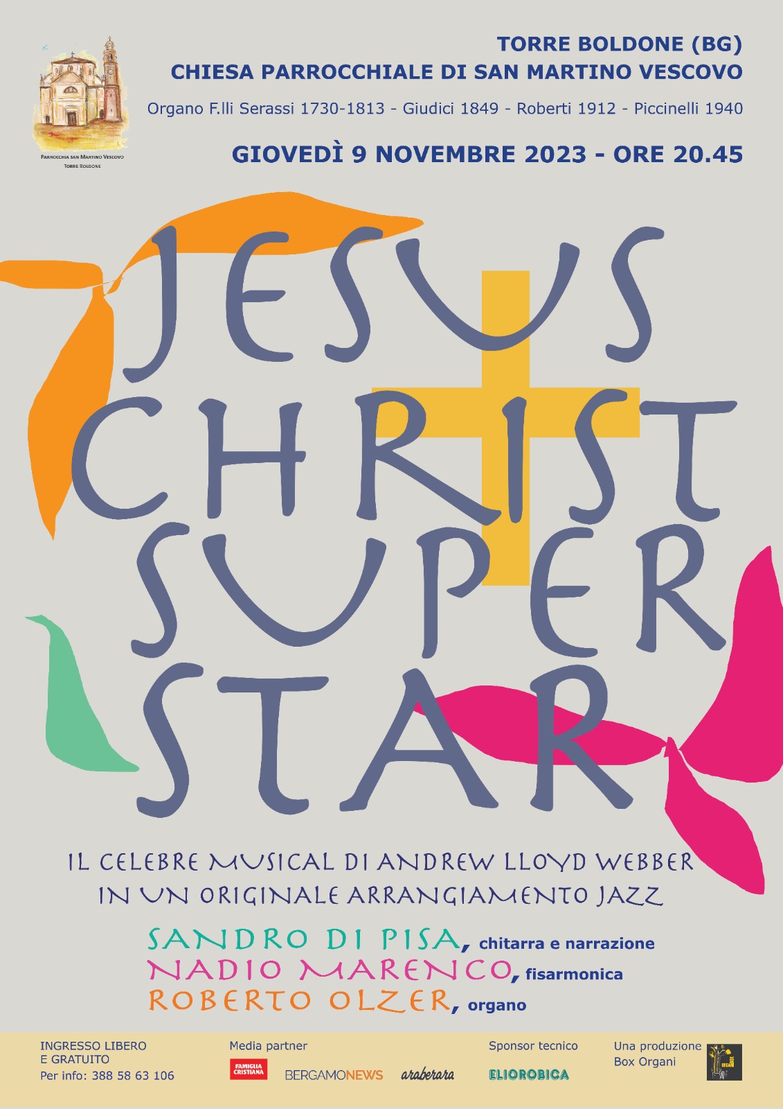 Già presentata con successo nel 2020 nell’ambito dei concerti della rassegna «Box Organi. Suoni e parole d’autore» di Lallio (Bg) – e poi replicata nel 2021 a San Pellegrino Terme e nel 2022 nella Chiesa parrocchiale di Gromo -, questa originale rivisitazione del musical è stata richiesta espressamente dal direttore artistico Alessandro Bottelli.