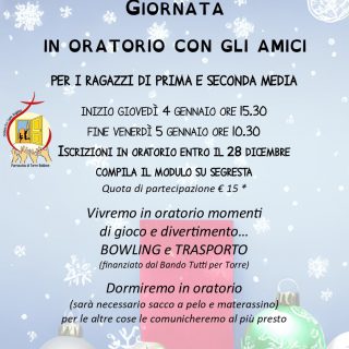 L’oratorio resterà chiuso nei giorni 23-24-25-26-30-31 Dicembre 1 gennaio Vi auguriamo un buon Natale e un felice 2024