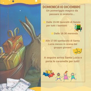 ⭐ SANTA LUCIA ⭐ 3 imperdibili notizie e eventi per celebrare insieme a grandi e piccini la magia di Santa Lucia e il suo asinello! 1. Tutti i giorni dalle 9 alle 18, nella...