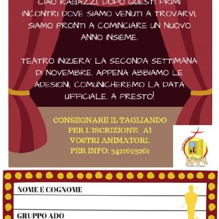 Come ogni anno tra le tante proposte per gli adolescenti tra la 1 superiore e la 4 superiore anche quest’anno torna la proposta del gruppo teatro.