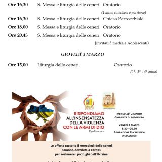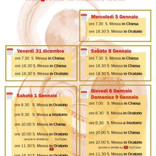 Anche per la settimana dal 23 gennaio al 30 gennaio le attività di catechesi e non solo compiti sono sospese. Salvo indicazioni diverse ai ragazzi da parte degli animatori è confermato l’incontro degli adolescenti.