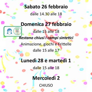 Orari apertura oratorio 26 febbraio – 2 marzo 2022