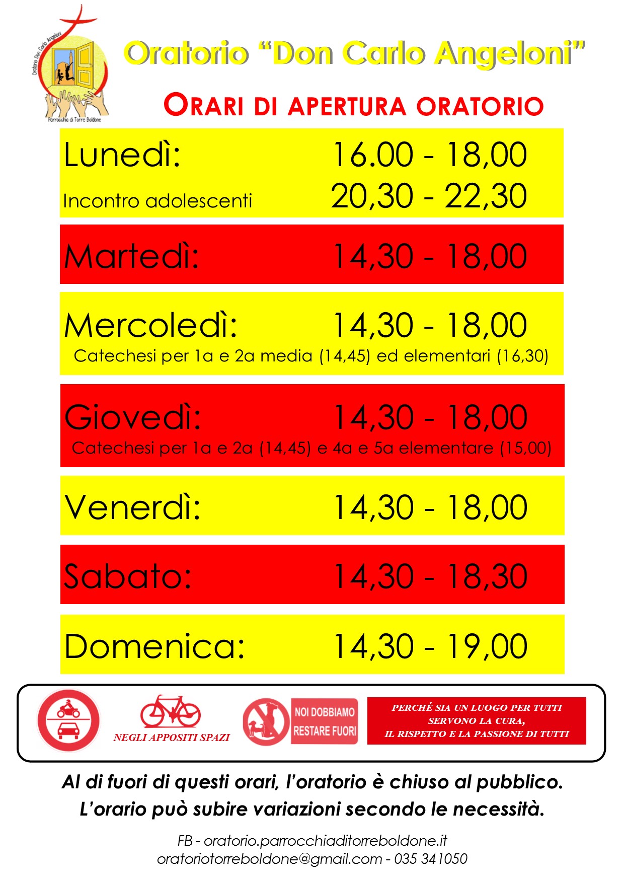 Nuovi orari apertura oratorio anno pastorale 2019 – 2020